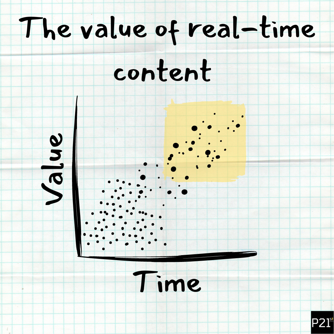 My concern with real-time content is this: You lose the value only time can provide. All that is left are rushed ideas that don't meet a project's potential quality. To make matters worse, our attention spans are thoroughly addicted to real-time content. Therefore, there is no intuitive decision on what piece of content is beneficial or what is a zero-value way to pass the time.Â